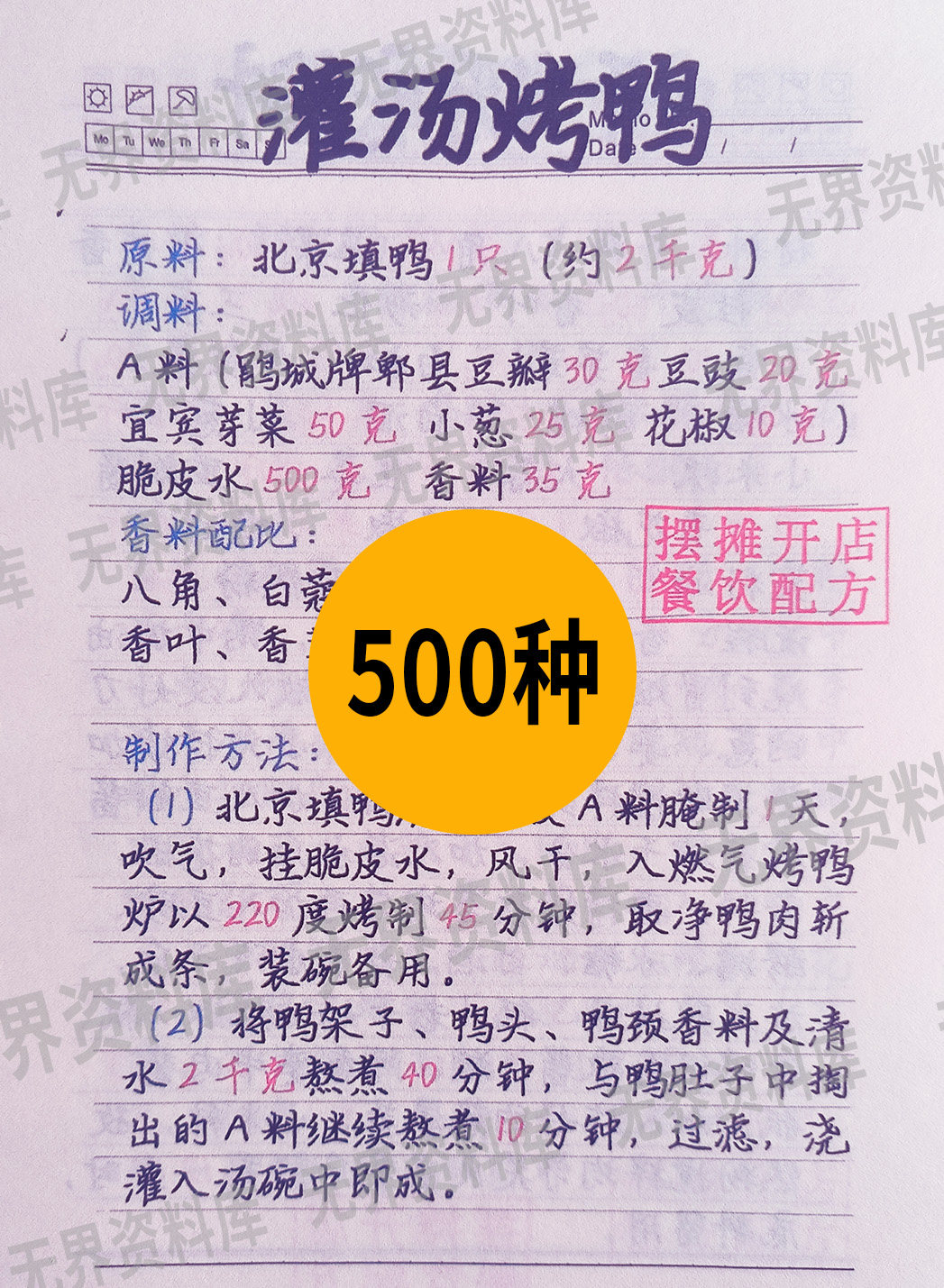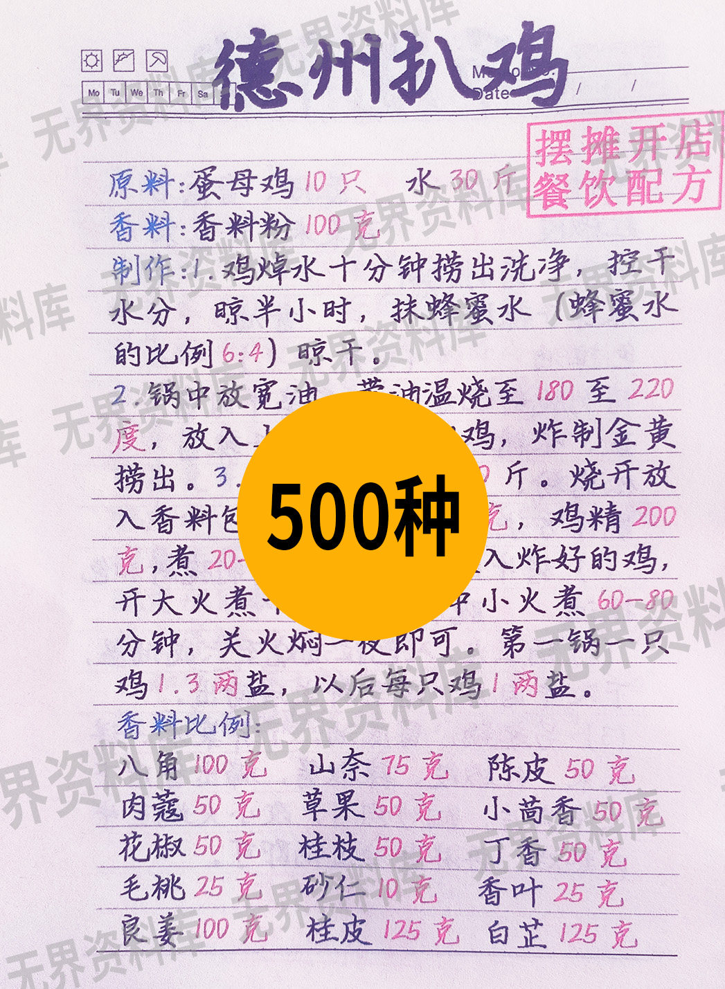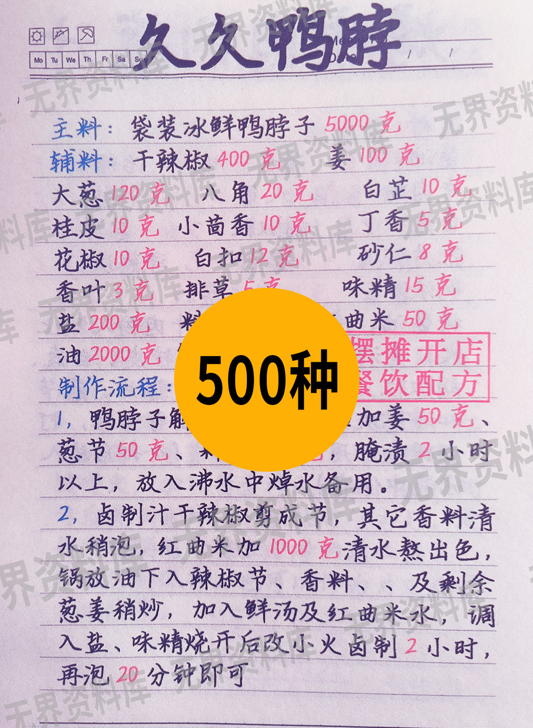 小吃技术配方资料直播手抄本手写本电子版商用开店摆摊餐饮小吃配方