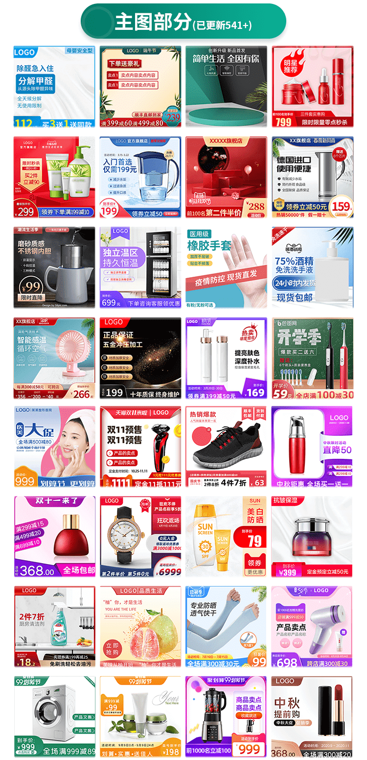 详情页,首页,主图等PSD模板,已更新5474款,272GB左右,包括: