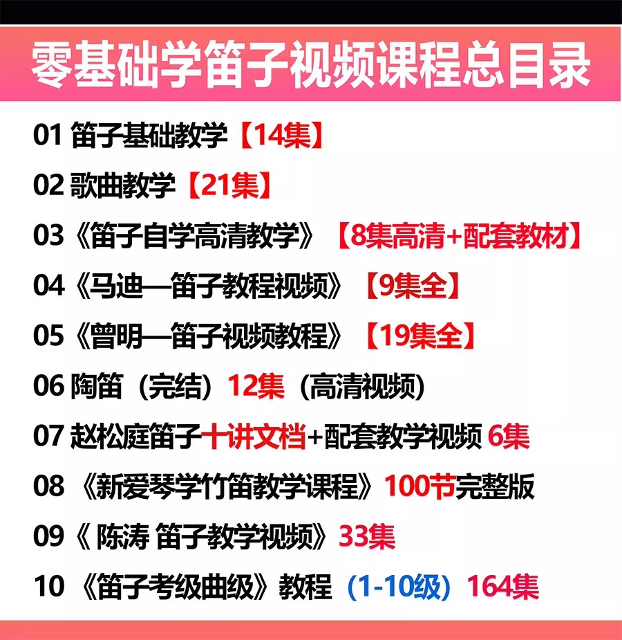 零基础学笛子视频课程竹笛子自学高清视频教程考级笛子指法技巧