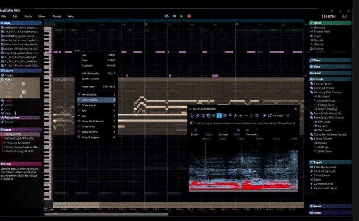 - Harmonic Editor:直接控制泛音结构,重塑音色或精准降噪。